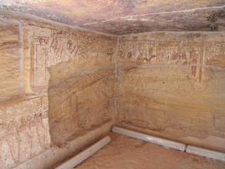 Das Felsengrab von Pennut ist klein und durch die zahlreichen Zerstörungen unspektakulär. Da hilft es auch nicht, dass es das einzigste Grab ist, das von einem Friedhof vor den Fluten des Nassersees gerettet und versetzt wurde. Das Grab sieht man als letztes der Kulturstätten an diesem Ort und wird von den beiden Tempeln (von Amada und Derr) abgehängt und ist nicht so beeindruckend anzusehen und bei mir hatte sich dann doch ein Anflug von Enttäuschung breit gemacht.