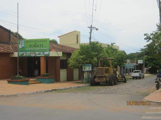 tobati ca 26.000 einwohner und 60 km von asuncion entfernt zu erreichen mit bus vom terminal asu über caacupe (basilika) ca 1 stdn fahrtzeit el mirador am ortsanfang : felsenhügel mit felszeichnungen wandermöglichkeiten zu töpfereien und einem wasserfall kirche im ortszenrum rund um tobati viele ziegelbrennereien