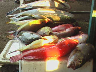 Wir sind mit einem Bekannten in der Früh um 6 Uhr vom Hotel mit dem TUK TUK abgeholt worden. Um diese Uhrzeit sollte man bereits dasein um noch alles mitzubekommen spätestens um 9 Uhr giebts hier nichts mehr. Sehr interessant. Was hier alles angeboten wird. Tunfisch, Rochen , Babyhaie, Haie , Schwertfische, Tinentenfische und viele andere Fischarten.