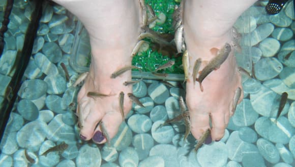 Wellness für die Füße, ich bin Wiederholungstäterin. Bei jedem Aufenthalt in Paguera besuche ich die Fische und wenn ich nach Hause komme, kann ich mir den Besuch bei der Fußpflege sparen.