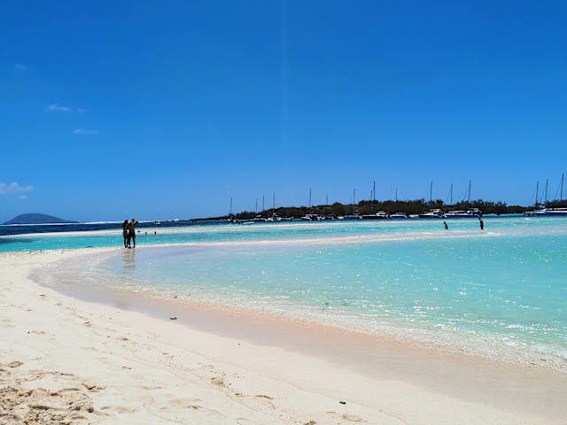 tolle Überfahrt von 2 h auf dem Katamaran, gutes Barbeque, schnorcheln leider enttäuschend, da auch bei EBBE starke Strömungen,auch hier viel Unrat überall (Glas,Plastic,vergessene Schuhe usw.)