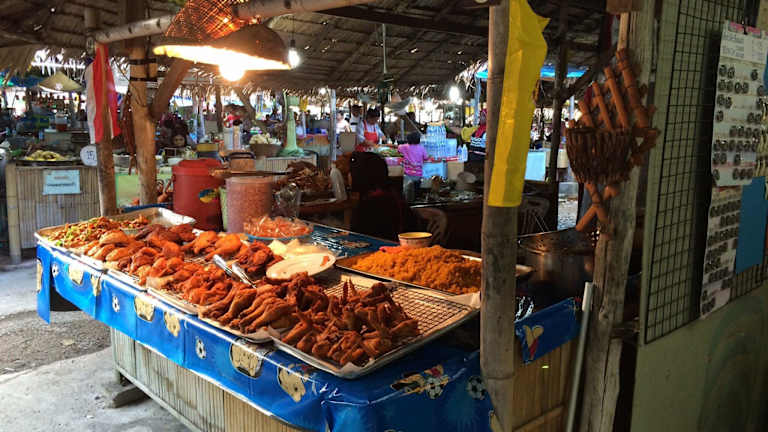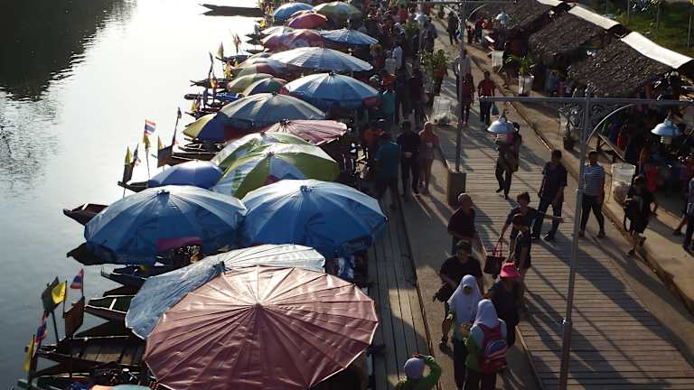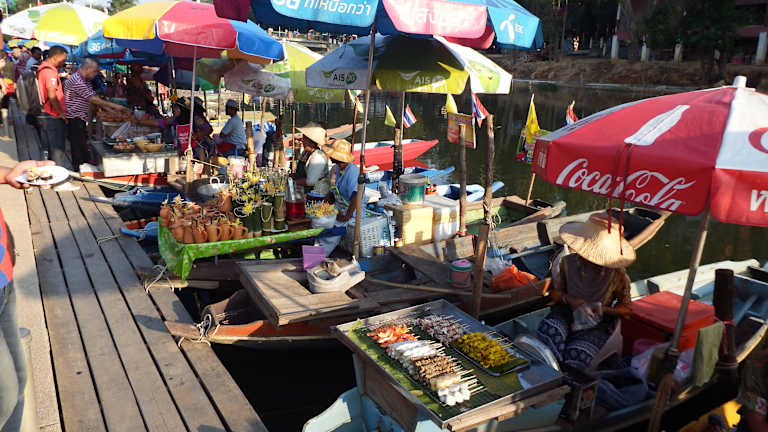 Im Gegensatz zum Floating Market bei Bangkok eher beschaulich und übersichtlich. Es gibt etliche Stände mit in erster Linie Lebensmitteln sowie einen langen Steg mit Booten, die Essen verkaufen, also in erster Linie ein Food Market.