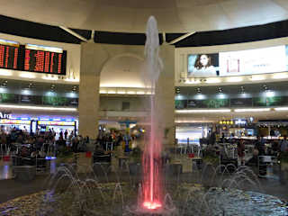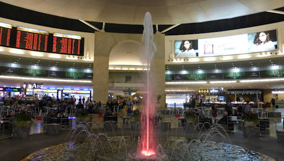 Der Flughafen Ben Gurion / Flughafen Tel Aviv ist der größte Flughafen von Israel. Er ist benannt nach David Ben Gurion, dem ersten Ministerpräsidenten Israels. Er ist gut an das Verkehrsnetz Israels angeschlossen. Es gibt einen Zug nach Tel Aviv und weiter nach Haifa; Busse nach Tel Aviv, Jerusalem und in manch andere Stadt. Ausserdem stehen Taxis und Scheruts (Sammeltaxis) zur Verfügung. Und natürlich sind diverse Mietautostationen vorhanden. Am Flughafen sind die Sicherheitsvorkehrungen höher als an den meisten anderen Flughäfen der Welt, jedoch keine Schikane, wie man manchmal hört. Die ganze Abwicklung ging relativ freundlich vonstatten und war auch recht flott. Nachdem wir den Check-In und die Pass-/Gepäckkontrollen alle hinter uns hatten, kamen wir in den schönen Wartebereich mit diversen Geschäften und auch mit Cafes und Restautrants. Hübsche Sitzmöglichkeiten sind vorhanden (es könnten jedoch einige mehr sein). In der Mitte des Raumes ist ein hübscher Springbrunnen. Von diesem Aufenthaltsbereich gelangt man dann zu den Gates