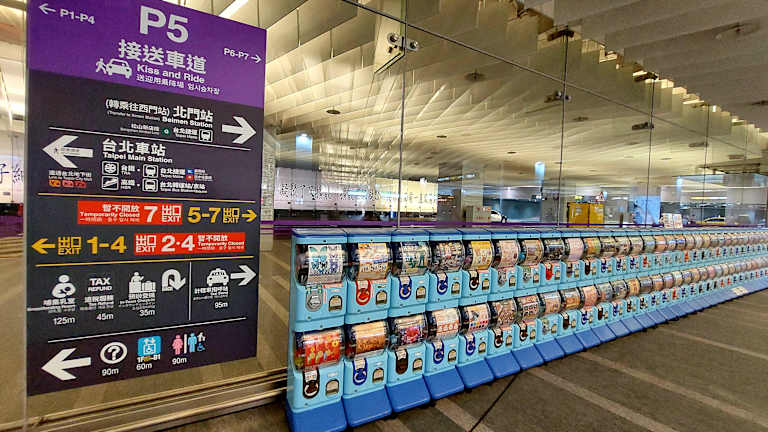 Ca 1.30 Stunden entfernt von Taipeh, es gibt gute Metroanschluss. Zuerst wird kontrolliert, ob man frische Lebensmittel. einführt, dann kommen die Einreisekontrollen sehr zügig. Es gibit Geldwechselautomaten, etwas umständlich zu bedienen, das Gepäck kommt schnell und die Orientierung ist einfach.