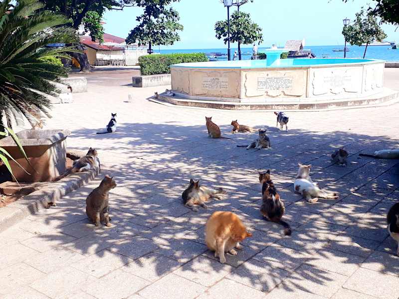 Der Forodhani Park liegt direkt an der Promenade am Meer und teilt sich in zwei Hälften. Auf der einen Seite mit viel Grün, Bänken und Möglichkeit der Ruhe und Entspannung. Auf der anderen Seite eine große Freifläche die tagsüber als allgemeiner Treffpunkt für Einheimische, Touristen, Guides, Undercover Polizisten, Katzen u.a. gilt und sich dann ab 17 Uhr zum Food Nachtmarkt wandelt. Man kann hier wirklich alles probieren, was die sansibarische Küche hergibt. Dazu muss man jedoch wissen, dass es eigentlich sehr günstige Festpreise gibt, diese aber nicht primär offen gezeigt werden. Als Neuling sollte man niemals den erstgenannten Preis akzeptieren, sondern sich die unterm Ladentisch befindliche Preistafel zeigen lassen. Am Rande des Food Marktes, neben dem Meeting Point Café, zeigen die „Klippenspringer“ allabendlich ihre Sprungkünste. Zwar nicht so spektakulär wie in Acapulco, aber durchaus unterhaltsam und immer gut besucht, sowohl von Einheimischen als auch von Touristen.