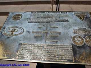 Wer im Westen der USA auf dem Weg vom Mesa NP zum Monument Valley ist, der kommt vorbei am Four Corners Monument und hat die einmalige Chance in vier US Bundesstaaten (Utah/ Colorado/ Arizona und New Mexico) gleichzeitig zu stehen. Four Corners ist der einzige Punkt der USA, wo die Grenzen von vier Bundesstaaten aufeinandertreffen und genau das macht diesen Punkt als touristische Anlaufadresse so interessant. Möglichkeiten dies im Foto gebührend festzuhalten gibt es ausreichend. Der Punkt befindet sich auf dem Gebiet der Navajo Indianer und ein Eintritts – Obolus ist notwendig, um das Gefühl von vier US-Bundesstaaten gleichzeitig unter seinen Füßen spüren zu können. Eine Reihe von Souvenirständen, die indianischen Schmuck und eine ganze Menge Nippes anbieten, gibt es am Four Corners Monument. 60 Minuten (max.) Verweildauer sollten eingeplant werden. Mögliche touristische Anschlussziele (Top Tipps): Monument Valley (Utah/ Arizona), Mesa Verde NP (Colorado), Arche NP (Utah).