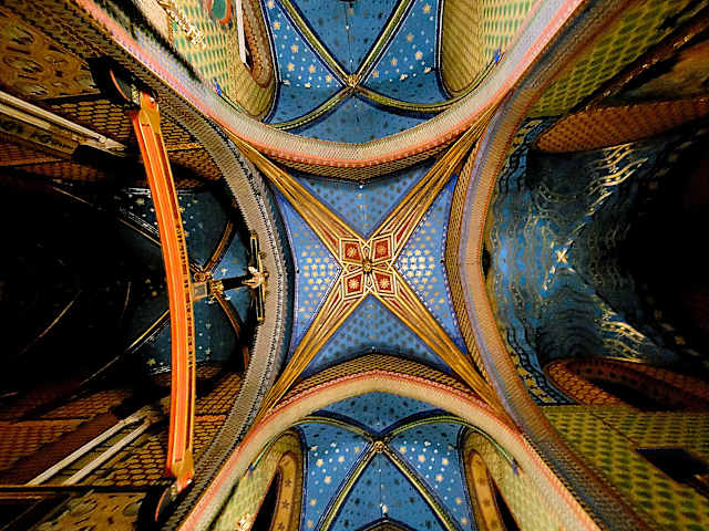 Im Reiseführer stand möglichst einen sonnigen Tag für den Besuch nutzen, leider war es während unserem Besuch in Krakau nicht wirklich sonnig. Der Reiseführer hatte wirklich Recht, es war sehr dunkel in der Kirche. Im 13. Jh. erbaut gehört die Franziskaner-Kirche den ältesten gotischen Kirchen in Krakau. Im Inneren können Wandmalereien und Kirchenfenster im Jugendstil bewundert werden. Von außen ist die Kirche neogotisch, innen der Jugendstil. Diese Kunstbewegung, die in Krakau Ende des 19. Jh. aufkam, sollte frei sein von allen gesellschaftlichen Zwängen. So zeigt die Jugendstil-Wanddekoration der Franziskaner-Kirche geometrische wie auch pflanzliche Motive, geschaffen Stanislaw Wyspianski.