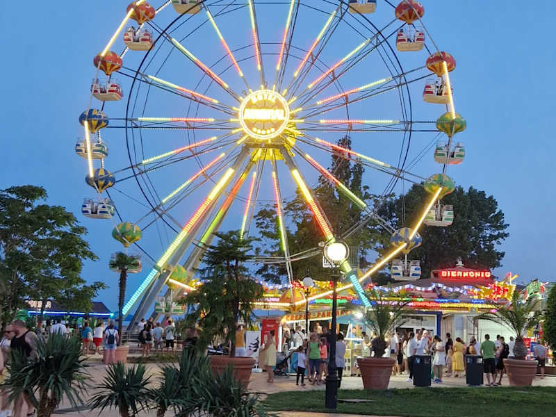 Eine wunderschöne Aussicht genießen Sie vom Riesenrad, direkt an der Strandpromenade und gleich neben einer der größten Attraktionen des Ortes. Der detailgetreue Nachbau des Eiffelturms beherbergt ein Café auf der Aussichtsplattform und sorgt für so manche Verblüffung. Auch rundherum mangelt es nicht an Unterhaltungsmöglichkeiten. Verfasst von HolidayCheck