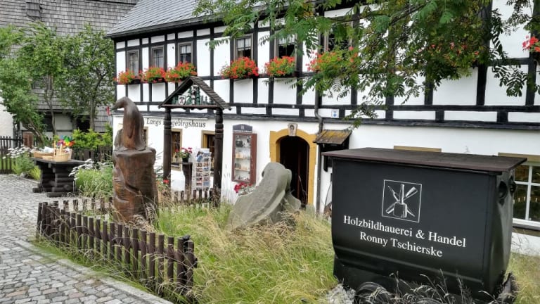 Im Rahmen einer Führung kann man in drei Räumlichkeiten Einblicke in das Hammerwerk mit seinen Ofenblasebälgen, in das Wohnhaus der damaligen Schmiedefamilie und die Kunst des Klöppelns und in den Bergbau und in die Kunst der Märchenerzählung gewinnen. Für uns als Bayern waren hier vor allem die russischen Märchen interessant, die uns nicht so geläufig waren.