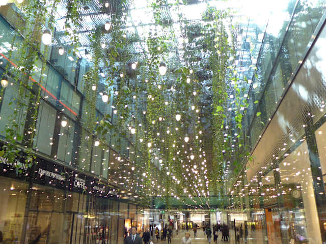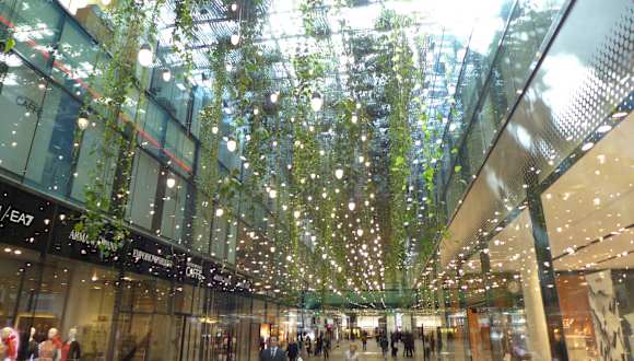Die eleganteste Passage der Innenstadt Münchens sind wohl die „Fünf Höfe“, die seit 2003 mit Modegeschäften, Gastronomie und Einzelhandel nicht nur bei schlechtem Wetter eine Vielzahl von Menschen anziehen. In einem architektonisch eher kühl gehaltenem Ambiente hoher Räume und unter Einsatz von riesigen Glasflächen kann man hier die Auslagen hochwertiger Anbieter bewundern und natürlich auch exzellent einkaufen. Auf „Schnäppchen“ darf man dabei allerdings nicht hoffen, dafür gibt es aber die Orginal-Stores von Armani, Max Mara, Strenesse, Dolce & Gabbana und ligne roset. Immerhin 8 Cafés und Restaurants sorgen für Stärkung und weitere Einzelhandelsgeschäfte stehen mit z. T. sehr hochwertigem Warenangebot für die Kunden offen. Auch wenn man eigentlich gar nichts kaufen möchte – der Bummel durch die „Fünf Höfe“ ist allemal einen Besuch wert. Mein persönlicher Favorit ist übrigens die „Schumann´s Tagesbar“ am Eingang von der Maffeistraße kommend – hier gibt es einen erstklassigen Espresso und das „Panini zwischendurch“ in entspannter Atmosphäre