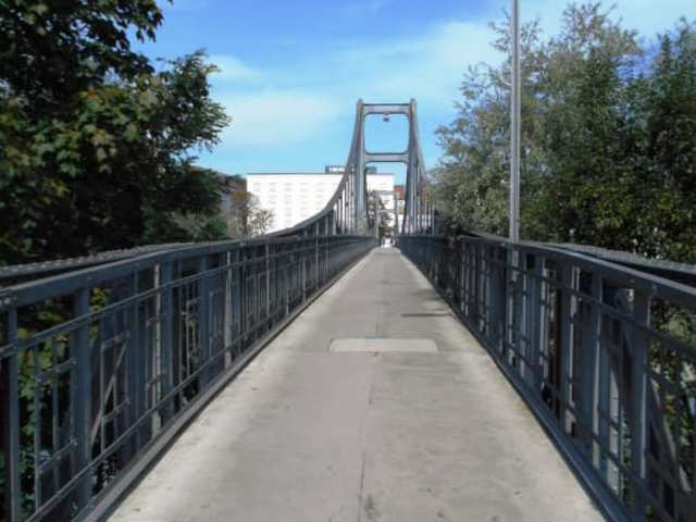 Erst in den 1970er Jahren wurde der Brückenzoll von 5 Pfennig pro Personen abgeschafft, der seit der Brückenerbauung im Jahr 1916 für das Überqueren des Flusses erhoben wurde. Nur der Name erinnert heute noch daran. Die Brücke selbst ist anscheinend ein beliebtes Fotomotiv, aber man hat von der Brücke auch einen schönen Blick auf die Stadt und den Fluss – noch mehr Fotomotive.