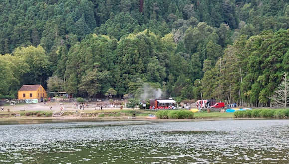 Die teilweise von immergrünem Wald umgebene "Lagoa das Furnas", der zweitgrößte See der Azoreninsel São Miguel, befindet sich in einem alten Krater des gleichnamigen Vulkans westlich der Straße von Furnas nach Vila Franca do Campo. Der See ist 176 Hektar groß und kann an einem Nachmittag umwandert werden. An seiner Nordseite gibt es die sog. Caldeiras, Erd- und Schlammlöcher mit Temperaturen von 64°C bis 96°C. Diese werden von den Bewohnern zur Zubereitung traditioneller portugiesischer Gerichte genutzt. Deren Wärme genügt, um in etwa sechs Stunden ein Cozido, eine Mischung aus Fleisch, Würstchen, Kohl, Kartoffeln und anderem Gemüse zu garen. Den Topf läßt man an einem Seil ins Loch hinab, das Loch wird verschlossen und der Cozido köchelt langsam vor sich hin. An der Südseite der Lagune steht die 1884 im neugotischen Stil errichtete Kapelle Ermida da Nossa Senhora das Vitórias. Homepage: https://www.cm-povoacao.pt/index.php/servicos-municipais/lagoa-das-furnas/acerca-da-lagoa-das-furnas
