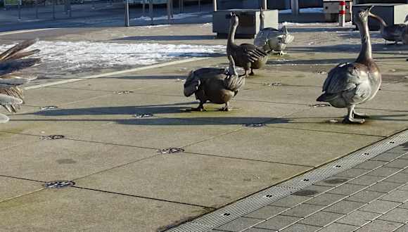 Der Namenssage nach soll die Stadt Gaggenau ihren Namen den Gänsen zu verdanken haben. Insoweit passt der schöne Brunnen am Bahnhof optimal. Der Brunnen ist auf einer größeren Fläche auf welcher sich Gänse in verschiedenen Positionen finden. Auch im Winter ohne fließendes Wasser ein schönes Fotomotiv.