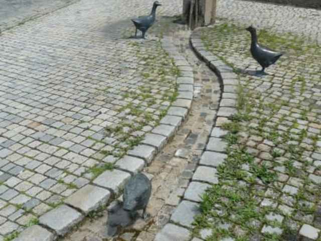 Der Gänsehirtenbrunnen in Neustadt Aisch befindet sich neben der Nürnberger Straße, kurz vor dem Nürnberger Tor (einem Torturm aus dem 14. / 15. Jahrhundert). Der Gänsehirtenbrunnen ist eine recht schöne Brunnenanlage, der Gänsehirte (in kleiner Bub) hütet seine Gänse, von denen er eine auf dem Arm trägt. Zudem ist ein kleiner Bachlauf nachgestellt, an dem seine anderen drei Gänse nach Nahrung suchen. Es ist dies ein recht schöner Brunnen und wenn man zum Nürnberger Tor geht, so sollte man am Gänsehirtenbrunnen zumindest mal kurz anhalten.