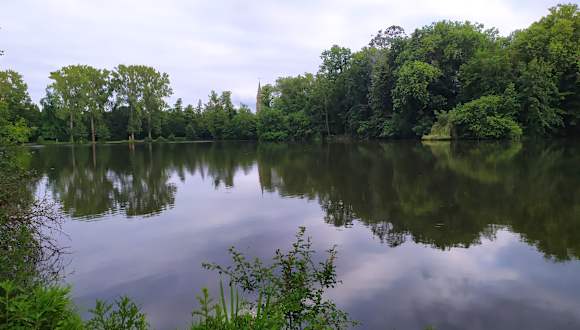 Aktuell kann man hier auch Fußball gucken. Nebenan vor dem Schlosshotel steht der Mannschaftsbus der Belgier. Und wer sich während eines Deutschlandspiels an den See begibt - da ist ausnahmsweise nichts los gewesen.