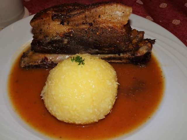 Bei meiner Entdeckertour durch die Gastronomiewelt Oberfrankens machte ich im Bad Staffelsteiner Ortsteil Stublang beim „Gasthof Dinkel“ Station – in dem sympathischen Familienbetrieb wird neben den hausgebrauten Bieren eine typische fränkische Küche angeboten, die um Spezialitäten-Tage ergänzt wird. Neben Schäuferla, Haxn, Schnitzelvariationen, Hendl, Salaten, Steaks, Leberkäse und vielen anderen Schmankerln gibt es zum Beispiel jeden Dienstag Rot- und Leberwürste, die legendäre „Schlachtschüssel“, Kesselfleisch und gebratene Leber, während am Mittwoch hausgemachte Bratwürste und Schweineripple der Renner sind. Freitags hingegen werden traditionell Forellen und Karpfen außerhalb der umfangreichen Standardkarte serviert. In den gemütlichen Gasträumen mit viel Holz sitzt man an größeren Tischen und ein freundlicher und flinker Service, das süffige Lagerbier aus der Hausbrauerei, faire Preispolitik und die nicht zuletzt die untadelige Küchenleistung machen einfach gute Laune.