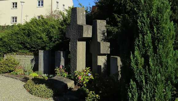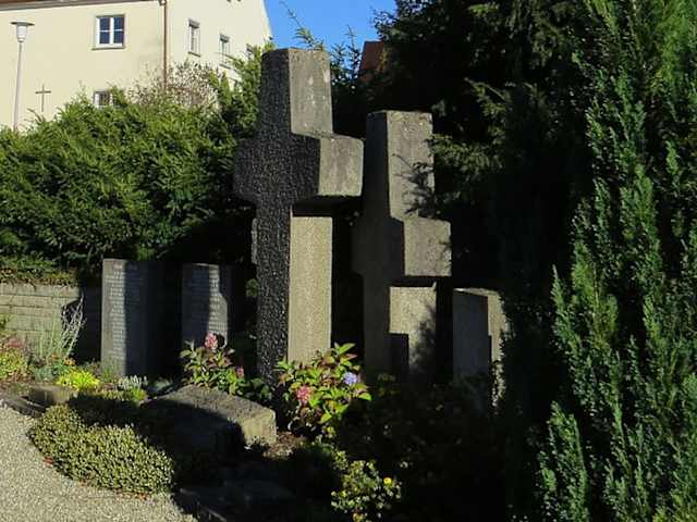 Das Kriegerdenkmal befindet sich nordwestlich der Pfarrkirche Maria Himmelfahrt. Es sind vier Gedenktafeln. In der Mitte stehen drei große Steinkreuze. Davor sind Bodenplatte mit Inschriften: Unseren Toten zum Gedenken - Uns Lebenden zur Mahnung. Zwei Steinplatten als Kriegsgräber vor dem Denkmal und Hinweise zu Soldaten von privaten Gedenksteinen. An der Kirchenwand ist ebenfalls eine Gedenktafel. Die Inschrift lautet: Sei getrost mein Sohn - Gedenket der im Weltkrieg gefallenen Helden und betet für sie ein Vater unser. Adresse: Vogteistraße 17, 88299 Leutkirch im Allgäu Webseite: https:// www.kriegstote.org/cgi-bin/baseportal.pl?htx=/Denkmaluebersicht/vtsxausgabe_Denkmal&append=1224;1225;3678;1226;1227;3442;1228;1229;1230;1231;2983;1232;1233;1234;170;173;27;3443;3588;1235;2955;1236;2709;1237;2956;1238;1239;29;3643;3644;1240;3587;1241;1242;1243;1246;1247;1248;1249;1250;1244;1245;3523;3524;1251;1252;1253;1254;1255;1256;2954;2543;1257;1258;1259;28;1260;1261;1262;2065;1263;1264;1265;1266;1267;1268;1269;3522;3580;1270;2747;1904;1273;1272;1271;1274;1275;3417;3421;3972;3419;3420;1276;1277;1278;2148;3416;3418&Id=1258&cmd=all Geodaten: QXP4+Q8 Leutkirch im Allgäu