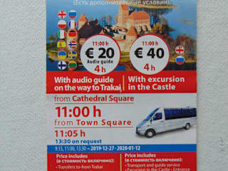 Mit dem Tour Operator "Vilnius City Tour" habe ich bereits zweimal sehr gute Erfahrungen gemacht, als ich jeweils eine Halbtagestour von Vilnius ins nahegelegene Trakai gebucht habe. Das erste Mal war bereits im Januar/ Februar 2019 ohne daß ich hier einen Reisetipp darüber geschrieben habe. Das zweite Mal habe ich die gleiche Tor nach Trakai im April 2022 gebucht. Die Tour kostet aktuell 25€ und dauert in etwa 4 Stunden. Abfahrt ist täglich um 11:00 ab dem Kathedralsplatz in Vilnius bzw. 11:05 vom dortigen Rathausplatz. Gefahren wird in einem sauberen, modernen Minibus mit ca. 20 Plätzen. Für einen persönlichen Pick Up und Drop Off von und zum Hotel werden nur 5€ mehr verlangt. Der Preis von 25€ inkludiert auch Kopfhörer für den Audio Guide (verschiedene Sprachen abrufbar) auf dem Weg nach Trakai. Achtung: Montags ist die Burg innen geschlossen, sodaß man nur das Gelände außen besichtigen kann. Ich bin im April 2022 der einzige Fahrgast gewesen und man hat schlußendlich 30€ für die Tour verlangt. Das war mir aber bei der Buchung bereits bekannt, daß wenn ich der einzige bliebe, daß sich dann der Preis erhöhte um die Tour rentabel zu fahren. Fair enough, wie ich finde. Der Fahrer, bei dem ich auch gebucht hatte, Reginaldas, ist ein älterer, sehr freundlicher, höflicher Litauer mit guten Kenntnissen, bei dem ich jederzeit wieder sehr gerne einsteigen würde! Ich kann diese Fahrt nur empfehlen, denn der Tag hatte sich beide Male gelohnt! Neben Fahrten ach Trakai werden aber auch Hop-On Hop-Off Touren in Vilnius angeboten. Hier die Kontaktdaten: City Vilnius Tour Ausros Vartu gatve 4 Vilnius Tel +370 600 600 80 und +370 699 54 0 64 Facebook: Vilnius ity TRour