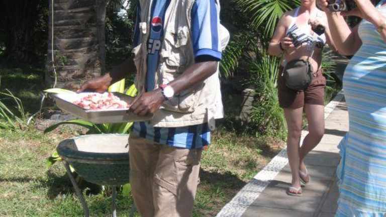 Täglich um 11:30 findet die Geier- und Bussard_Fütterung im Senegambia Hotel statt. WIr waren im Hotel nebenan und konnten uns das problemlos mit ansehen. Ein Pfleger erzählt hierbei etwas zu den Tieren und beantwortet Fragen. Uns hat es sehr gut gefallen !
