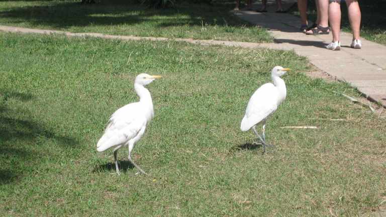 Mein Mann und ich sind begeisterte Vogelbeoachter und haben aus diesem Grund das Senegambia Beach Hotel gewählt. Täglich um 11. 30 werden in dem weitläufigen Hotel vom Hotelpersonal ca. 50 Geier gefüttert. Dieses Schauspiel dauert ungefähr 10min und wird außerdem von Kuhreihern begleitet. Nach der Fütterung wird auf dem Rasen ein Wasserhahn angedreht, die Vögel trinken und baden und dann werden die Flügel zum Trocknen ausgebreitet. Ich habe noch nie so viele Geier gleichzeitig und nah beobachten können und war jeden Tag auf's Neue beeindruckt. Täglich kommen Gäste aus den umliegenden Hotels, um die Fütterung mitzuerleben. Das wird vom Hotelpersonal gerne akzeptiert und man ist als Nicht-Hotel-Gast willkommen. Das Hotel ist sehr stolz darauf. Ein absolutes Muß für Vogelliebhaber! Ich könnte mir vorstellen, daß für diese Performance bald Eintritt bezahlt werden muß.