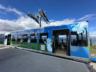 geht schon gut los: Abstellen des Autos in der kostenlosen kühlen Tiefgarage. - Im recht hohen "Gondelpreis" sind Gondel, danach Geisterzug bis fast Gipfel, sowie sehr viele hochwertig gestaltete Attraktionen für Kinder im Grundschulalter dabei, die die Kinder tatsächlich motivieren, zu wandern (ohne, dass sie es groß merken). Auch der Rückweg mit Geisterzug und Gondel ist wieder dabei. Und ja, Schwimmbad (ZB in Schwarzach ) ist billiger. Wir waren als 2 Senioren, ein sehr sportliches Pärchen, eine Familie mit Baby oben und haben uns alle sehr wohlgefühlt. Für das Baby haben wir den Kinderwagen an der Bergstation doch stehengelassen und es wurde nur eine Trage genutzt. Der Geisterzug hat aber hinten auch Kapazität für BabyStroller und Kinderwägen. Das sportliche Pärchen ist noch ein paar Gipfel weitergelaufen und wir haben uns an der Ritterburg wieder zusammen gefunden.