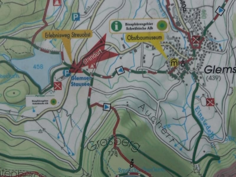 Der Wanderparkplatz ist auf halber Höhe zwischen Glems und Eningen an der L380a. Es ist ein kleinerer Parkplatz. Von hier gehen aber verschiedene Wanderwege ab. Auch ein Naturpfad und ein Erlebnisweg kann man von hier aus starten. Ein kurzer Abstecher zum bekannten Stausee ist auch möglich. Adresse: Parkplatz Stausee, 72555 Metzingen Geodaten: G74R+WF Metzingen