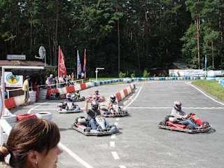 Viel Spass zum guten Preis (8,00 € für 10 Minuten) hat man auf der im Wald gelegenen Go-Kart Bahn.
