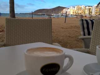 Die Bäckerei und Café Granier im nördlichen Bereich der Strandpromenade (Paseo De Las Canteras 12) hat eine sehr gute Lage. Man kann entweder im Café sitzen, ich empfehle aber einen Platz direkt auf der Promenade – besonders schön ist es direkt an dem kleinen Mäuerchen, dass die Strandpromenade vom Strand abtrennt. Man kann hier oberhalb vom Strand gut sitzen und hat dabei einen schönen Blick auf den Strand und den Atlantik. Es handelt es sich hierbei um eine Bäckerei mit angeschlossem Café – man bestellt und bezahlt an der Theke und bekommt hier dann auch seine bestellten Sachen. Wir waren mehrmals bei Granier zum Nachmittagskaffee – das Gebäck ist nicht übel, der Kaffee war o.k. Warum wir aber mehrfach hier waren, das ist die tolle Lage und der tolle Ausblick. Granier hat noch einige andere Niederlassungen in Las Palmas, u.a. liegt ein weiters Café dieser Kette weiter südlich an der Promenade (Paseo De Las Canteras 61).