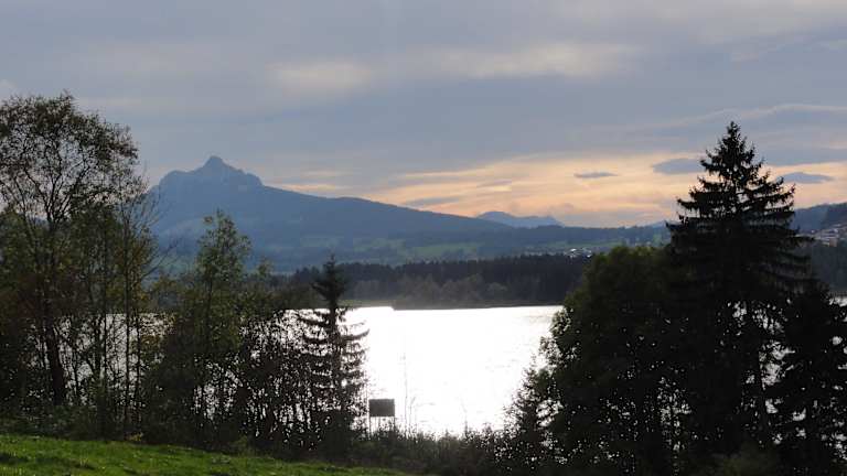 Der Grüntensee im Landkreis Oberallgäu an der Grenze zum Landkreis Ostallgäu ist ein 2,5 km langer und 11,2 m tiefer Stausee, der 1962 fertiggestellt wurde und sowohl dem Hochwasserschutz als auch der Stromerzeugung dient.