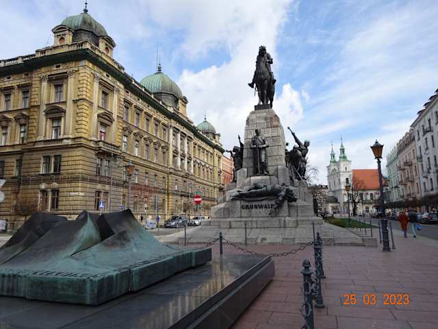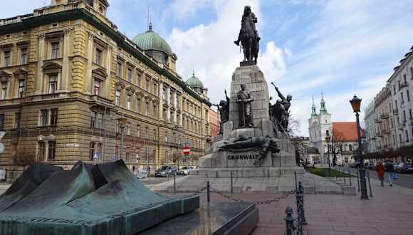 Das an die Tannenberg-Schlacht von 1410 erinnernde Denkmal wurde am 500. Jahrestag am 15. Juli 1910 eingeweiht. Auf dem Sockel in der Mitte des Denkmals befindet sich ein Reiterstandbild des Königs Wladyslaw Jagiello II., der siegreich aus dieser Schlacht hervorging und dessen sterblichen Überreste in der Wawel-Kathedrale in Krakau beigesetzt sind. Während der deutschen Besetzung Polens wurde es 1939–40 demontiert und der Sockel gesprengt. 1972 gründete sich in Krakau ein Komitee zur Wiedererrichtung des Denkmals. Das jetzt auf dem Jan-Matejko-Platz stehende Denkmal wurde 2010 neu erschaffen.