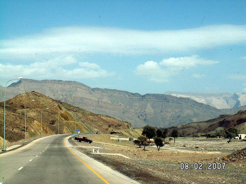 Wir fuhren 2 mal durch das Hadja Gebirge. Im Februar 07 vom Oman kommend in die VAE und im Dezember 07 von Ras al khaimah nach Dibba. Diese Strecke ist sehr schön ausgebaut, teilweise bei der erste Reise noch im Bau im Dezember aber schon fertige, gute Strassen. Das Hadja Gebirge hat seinen eigen Reiz. Es ist ein kales Gebirge, aber durch seinen großen Mineralienanteil leuchtet es immer in anderen Farben und Schichten.