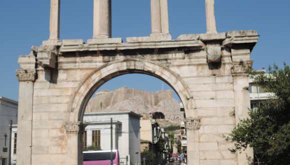 Etwas verloren steht direkt am Übergang der Leoforos Andrea Singrou in die Leoforos Amalias wenige Meter vom mehrspurigen tosenden Verkehr entfernt der Hadriansbogen, der 131/132 zu Ehren des römischen Kaisers Hadrian hier errichtet wurde. Hier beginnt auch der Athener Stadtteil Mets, ebenso hat man von hier aus bereits einen schönen Blick auf die Überreste des Tempels des Olympischen Zeus. Der Hadriansbogen ist frei zugänglich, kein Eintritt.