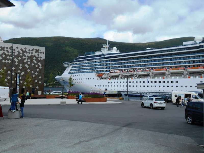 Åndalsnes hat nur einen kleinen Hafen, aber der bietet genug Platz für die großen Kreuzfahrtschiffe. Und fast jedes dieser Schiffe bring mehr Touristen an Land als der Ort Einwohner hat, das sind nämlich nur knapp über 2000. Allerdings verkraftet der Ort diesen Ansturm recht gut, denn die meisten Kreuzfahrt-Touristen machen sich sofort auf den Weg zu Ausflügen in die nähere Umgebung.