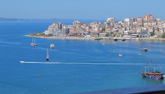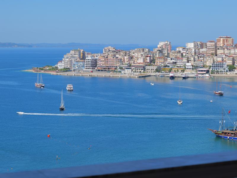 Saranda liegt im Süden Albaniens und ist u. a. der Anlaufhafen für die aus Kerkyra / Korfu-Stadt kommenden Besucher- / Touristenschiffe. Da Saranda selbst touristisch ist - der Strand liegt in der Nähe des Hafens - gibt es Cafés, Restaurants, usw. in diesem Stadtteil.