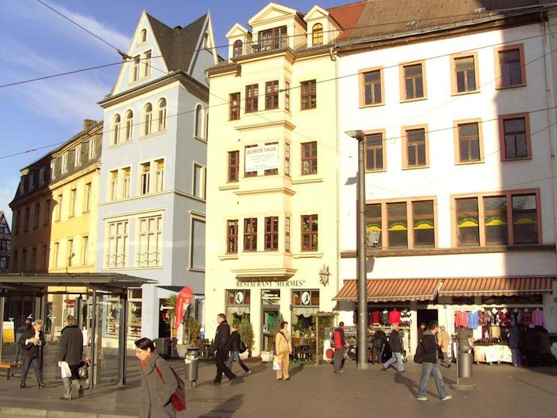 Der Haupt- Einkaufsstraßen- Zug von Halle (Saale) beginnt kurz nach dem Hauptbahnhof mit der "Leipziger Straße", über den "Markt", weiter durch die "Große Ulrichstraße". Der Großteil der Kaufhäuser, Boutiqen und Geschäfte konzentriert sich in dieser "Meile". Vertreten sind hier u. a.: Galeria Kaufhof, Peek & Cloppenburg, C & A, New Yorker, Fischer, Woolworth, viele Buchhandlungen, Modegeschäfte, Fachgeschäfte- fast alle führenden in der Stadt. Weiter große Hotels und Restaurants, viele Cafes u. a. Die Shoppingmeile wurde in den letzten Jahrzehnten recht umfassend in Ordnung gebracht und teils liebevoll- und Historisch- detailgetreu restauriert. Die Innenstadt von Halle wurde im 2. Weltkrieg wenig zerstört, so daß ein großer Teil der historischen Bausubstanz erhalten ist. Dadurch sind sehr viele wertvolle Häuser mit schönen, teils prächtigen Fassaden, u. a. aus der "Gründerzeit" zu betrachten, die man in anderen Städten so massiv nicht zu Gesicht bekommen kann. Insbesondere in der Großen Ulrichstraße, am Markt und im unteren Teil der Leipziger Str. gibt es viele sehenswerte Hausfassaden. Über die Gesamtstrecke sind u. a. weiter sehenswert: Leipziger Turm (Leipziger Str. /Hansering), Ulrichskirche (unterer Teil der Leipziger Str.), Roter Turm mit Roland, Händel- Denkmal, Stadthaus, Kirche Unserer lieben Frauen mit den "Hausmannstürmen"(am Markt). Ansehen sollte man sich auch am Markt im neu gestalteten Kaufhaus New-Yorker den wunderschönen, historischen Treppen- und Galerieteil innen. Das wohl einmalige Ensemble wurde bei der Neueinrichtung sehr schön erhalten bzw. restauriert. Anlieger der Shoppingmeile ist u. a. auch die hallesche Kulturinsel mit dem Neuen Theater (Große Ulrichstr.). Die Einkaufsmeile mit vielen Sehenswürdigkeiten liegt zentral im Stadtinneren (Straßenbahn, Haltestellen Markt). Von dort gelangt man schnell zu einigen weiteren wichtigen Kultur- und Denkmalspunkten der Stadt: Franckesche Stiftungen, Händelhaus, Moritzburg mit Kunstgalerie, Campus der Martin- Luther- Universität, Opernhaus, Händel- Halle, Steintor- Variete. Unmittelbar vom Markt aus auch erreichbar ist ein lohnendes Alt- Stadtviertel (z. Z. noch in Teilrestauration), hier liegt auch das Stadtmuseum- Zugang links neben Stadthaus und eine der Kneipenmeilen, die "Kleine Ulrichstraße" (u. a. erreichbar durch die Große Ulrichstr.)