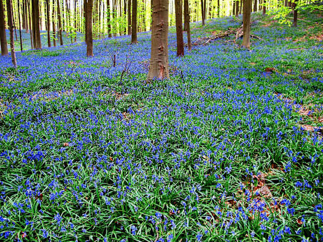 Der „Hallerbos“ (Niederländisch für Wald von Halle) ist ein schöner Mischwald in der Provinz „Vlaams-Brabant“ (flämisch Brabant), in der Nähe des hübschen Städtchens Halle, etwa 25 km südwestlich von Brüssel. Dieser Wald ist ein Reststück des riesigen Urwalds „Kolenwoud“ (Kohlenwald), der sich in der Römerzeit vom Rhein bis an die Nordsee erstreckte – Julius Cäsar nannte diesen Wald in seinen Berichten über den gallischen Krieg „Silva Carbonaria“ – ; der ehemalige „Kolenwoud“ ist übrigens verantwortlich für die heutige Sprachenteilung Belgiens (nördlich des Waldes spricht man Flämisch/Niederländisch, südlich Wallonisch/Französisch). Einmal im Jahr – von Mitte April bis Anfang Mai – passiert was ganz Besonderes in diesem Wald. Millionen und zig Millionen von wilden Hyazinthen verwandeln den Waldboden in einen lilablauen Blütenteppich von mehreren Quadratkilometern. Ein Naturerlebnis ersten Ranges, nicht nur fürs Auge, sondern auch für die Nase. Der herrliche Duft und der Blütenzauber – in Verbindung mit den hellgrünen jungen Blättern – verleihen dem Hallerbos eine fast magische Wirkung. Nach drei, vier Wochen ist dieses fabelhafte Naturschauspiel leider vorüber, und wird der Hallerbos wieder ein schöner aber ganz normaler Mischwald. Dieser Wald steht unter Naturschutz, aber zwei Wanderungen führen durch den Wald ; die „Sequoiawandeling“ ist vier Kilometer lang, die “Reebokwandeling“ acht Kilometer. Für Geh- und Sehbehinderte gibt es außerdem einen behindertengerechten Rundwanderweg von fast zwei Kilometern (die „Achtdrevenwandeling“). Anfahrt: Sie erreichen den Hallerbos am leichtesten über die Autobahn Brüssel-Bergen/Paris (E 19) ; verlassen Sie die Autobahn bei der Ausfahrt 21 (Halle), an der Ausfahrt links halten und dann an der zweiten Ampel links abbiegen auf die N 28 (Halle-Nijvel). Nach etwa drei Kilometern entdecken Sie das Schild zum Hallerbos (links abbiegen, mehrere Parkplätze). Weitere Informationen : „www.hallerbos.be“ und „www.natuurenbos.be“ (Agentschap voor Natuur en Bos).
