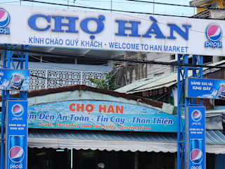 Mit dem Shuttle-Bus unseres Hotels "Furama Resort" fuhren wir durch das belebte Stadtzentrum in die Nähe des Han Marktes. Der Fahrer teilte uns mit, dass er uns nach zwei Stunden wieder an derselben Stelle abholen würde. Wir waren also auf uns alleine gestellt. Die Besichtigung des zweigeschossigen Marktes war ein richtiggehender Kulturschock und wir fühlten uns nicht ganz wohl. So etwas ähnliches hatten wir bereits in Hangzhou (China) erlebt und es traf uns nicht unvorbereitet. Jutta hat einige Tees gekauft. Nach dem Besuch gingen noch weiter zum Han River, wo wir eine schöne Aussicht auf die Brücken hatten.
