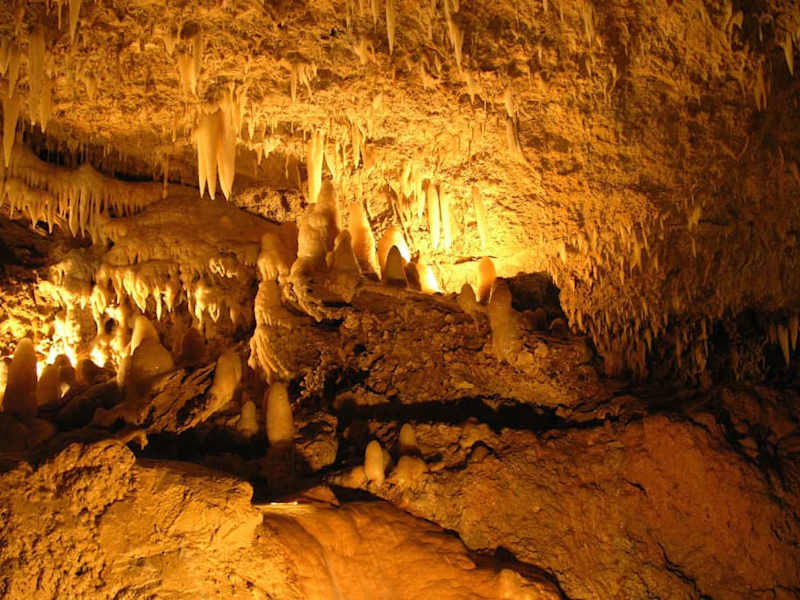 Die "Harrison's Cave" Tropfsteinhöhle ist nur mit der Tram zu befahren. Über breiten Wegen geht es mit der Tram durch das Höhlensystem. Es gibt jede Menge verschiedene Tropfsteine und einen großen Wasserfall zu sehen. Wer nicht gerne durch Höhlen andert sondern gerne gefahren werden möchte, für den ist die "Harrison's Cave" sicherlich eine gute Alternative.