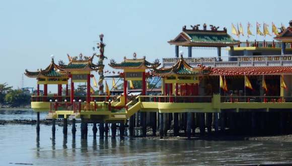 Am westlichen Ende der chinesischen Clan Jetties, hinter der Yeoh Jetty steht ein buddhistischer Tempel, der aus der Entfernung den Eindruck erweckt, auf dem Wasser zu schwimmen. Tatsächlich steht der Tempel auf einem von Stelzen getragenen Steg, der ins Meer hinausragt. Der Tempel steht am Rande eines historischen Teils der Küste, ist selbst aber erst 1972 als kleiner Schrein gegründet und erhielt 2011/12 eine Erweiterung zu dem heute zu sehenden beeindruckenden Gebäude.