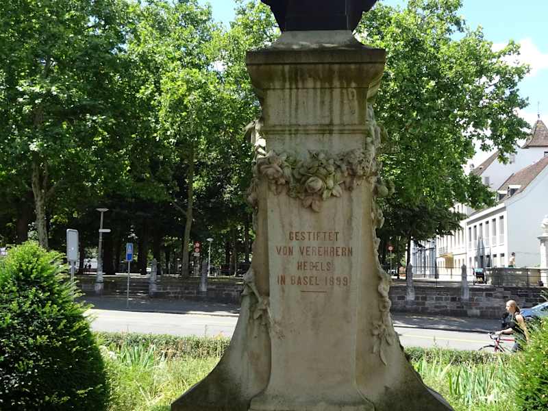 Das Denkmal befindet sich vor der Peterskirche. Hier wurde Hebel - ein Dichter und Schriftsteller - getauft.