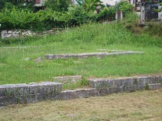 Das Heiligtum des Herakles liegt auf einem recht großen Gelände. Man erreicht es am einfachsten, wenn man ab dem Odeon (siehe Reisetipp) die Straße nicht Richtung Kap Evraiókastro / Apostelkirche sondern in die Gegenrichtung stadt-/zentrumauswärts läuft. Die Entfernung zum Heraklion beträgt max. 300 m – eher aber weniger. Das Gelände der Stätte kann betreten werden. Leider war ein großer Teil zur Zeit meines Besuches unter abgemähtem Gras und Unkraut verborgen, so dass nicht wirklich viel zu erkennen war. Es soll allerdings auch nicht viel von der ursprünglichen Stätte übrig geblieben sein – einzig ein paar Fundamente und die Reste eines Altars. Präzise ausmachen konnte ich nichts. Zur Geschichte der Stätte: 405 v. Chr. soll es hier zu massiven und brutalen Hinrichtungen gekommen sein: Im Peloponnesischen Krieg zwischen Athen und Sparta (die Bevölkerung von Thassos stand auf der Seite der Athener) ließ der siegreiche spartanische General hier einen großen Teil der Bewohner Thassos’ hinrichten. Anmerkung: Gegenüber der Stätte des Herakles liegt die Straße „(Odos) Pierre de Vambez“. Geht man diese entlang Richtung Zeus-Hera-Tor, so gelangt man nach wenigen Metern zum „Friedhof der Sarkophage“. Obwohl – auf diesem großen Gelände liegen nicht nur Sarkophagdeckel, usw. sondern auch sonstige Bauelemente. Betreten kann man das Gelände nicht.