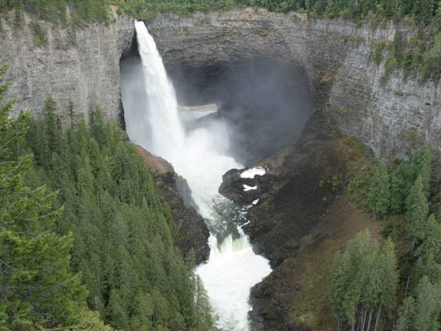 Die "Helmcken Falls", der vierthöchste Wasserfall Kanadas, liegen im Wells Grau Provincial Park nahe der Hauptstraße von Kamloops nach Jasper im südöstlichen British Columbia. Der 141 Meter hohe Wasserfall im Murtle River wurde 1913 von dem Vermessungsingenieur Robert Henry Lee entdeckt. Am Rand des Canyons befindet sich eine Aussichtsplattform, die einen Panoramablick über das Katarakt bietet. Ein besonderes Bild bietet sich im Winter, wenn der Wasserfall eingefroren ist.