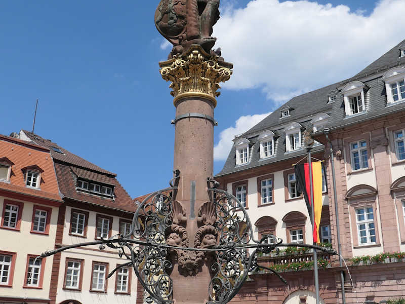 Heidelberg war nach dem Pfälzischen Erbfolgekrieg zerstört. Nur wenige Einwohner sind geblieben. 1703 beauftragte die Stadt einen Brunnen vor dem Rathaus zu errichten, in welchem mittig eine Herkulesfigur auf einer Säule, stehen sollte. Es war der Dank an die Heidelberger Bürger, sollte aber auch Ansporn für den Wiederaufbau sein. Der Brunnen hat eine runde Form. Aus der Säule sind vier Wassereinläufe aus Gusseisen angebracht. Adresse: Marktpl. 5, 69117 Heidelberg Webseite: http:// statues. vanderkrogt. net/object. php?webpage=ST&record=debw051 Geodaten: CP66+V5 Heidelberg