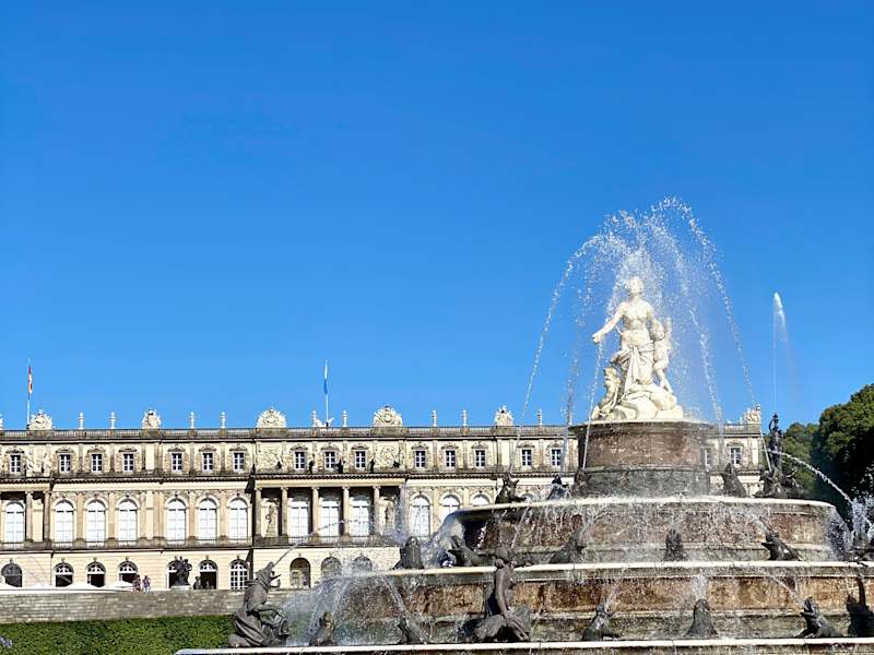 Das Schloss Herrenchiemsee und seine Gartenanlage waren ein ehrgeiziges Projekt von Ludwigs II., der damit dem Schloss von Versailles nacheifern wollte. In seiner Bemühung, sich mit dem Sonnenkönig messen zu können, plante der „Kinni“ nicht nur sein Schloss auf der Herreninsel mit einem Paradeschlafzimmer und klassischem Spiegelsaal, sondern auch eine großartige Gartenanlage. Im Stil der französischen Barockgärten übernahm Hofgärtendirektor Carl von Effner die symmetrische Anlage des Parks, der bis heute einfach nur bezaubert: Brunnen und Wasserparterre, Skulpturen der griechischen Mythologie, Jagdszenen, Wasserspeier und die fast einen Kilometer lange Auffahrtsallee waren praktisch fertig, als König Ludwig II im Juni 1886 starb. In seinem bis dahin noch im Bau befindlichen Schloss verbrachte der König hingegen keine einzige Nacht. Der Rundgang durch den Schlosspark von Herrenchiemsee hat mich nachhaltig begeistert und die regelmäßig zwischen Anfang Mai und Ende September stattfindenden Wasserspiele sind mehr als sehenswert.