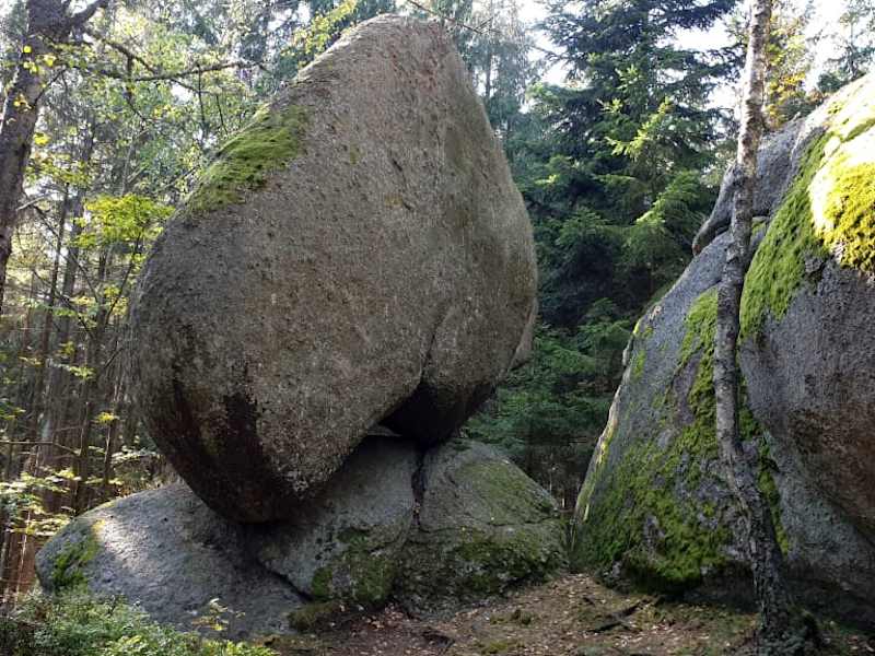 Der Ausgangspunkt ist der Kirchenplatz in St. Oswald, es gibt hier auf diesem Weg 10 ganz besondere Stationen mit sagenumwobenen Plätzen. Wir haben nur einen Teil des Weges gemacht, da es für meinen Mann lang war. Ein Highlight der "Herzstein" (Zeichen der Liebe) - eine 5 Meter hohe Steinformation, die einem aufgestellten Herzen sehr ähnlich sieht und unten einen Spalt hat. Der Sage nach kann man Krankheiten, Leiden und Sünden abstreifen wenn man durchschlüpft. Andere Station der "Wasserbehälter" (Zeichen für Gesundheit) und der "Wackelstein" (Zeichen für Optimismus).