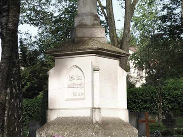Im alten, südöstlichen Teil des Hauptfriedhofs, nahe der Mauer, befindet sich ein eindrucksvolles, großes Steinkreuz mit Corpus. Vom Fuß des Sockels misst es rund sechs Meter Höhe. Das Kreuz ist aus Kellheimer Kalkstein und zentrales Symbol des christlichen Glaubens. Es steht auf einem Sockel, auf dem höchsten Punkt des Friedhofes. Adresse: Friedhofstr. 37, 88212 Ravensburg Webseite: https://www.ravensburg.de/rv-wAssets/pdf/buergerservice-verwaltung/Broschuere-Grabdenkmale-Hauptfriefhof.pdf Geodaten: QJMC+2W Ravensburg