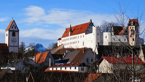 Das prächtige Hohe Schloss Füssen thront auf dem Berg hoch über der Stadt. Die frühere Sommerresidenz der Fürstbischöfe von Augsburg ist mit Ihren einzigartigen Illusionsmalereien eine eindrucksvolle Sehenswürdigkeit. Genießen Sie die atemberaubende Aussicht vom Torturm und besichtigen Sie den früher als Verlies genutzten Fallturm. Ebenfalls zur Schlossanlage gehört die Veitskapelle mit Ihren herrlichen farbenprächtigen Wand- und Gewölbemalereien. Im Schloss sind die Galerie der Bayerischen Staatsgemäldesammlungen und die Städtische Galerie untergebracht. Verfasst von HolidayCheck