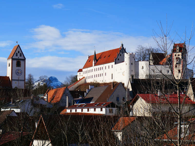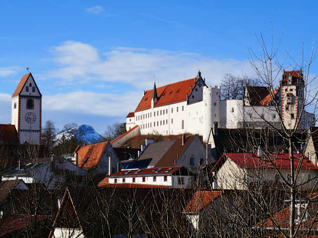 Sehr schön gelegen, auf einer Anhöhe über Füssen, liegt das Hohe Schloss. Es war die einstige Sommerresidenz der Fürstbischöfe von Augsburg. Es zählt zu den bedeutendsten Profanbauten der deutschen Spätgotik. Von außen wirkt das Schloss wie eine wehrhafte Burg. Der Innenhof überzeugt mit seinen sehr schönen Malereien an den Fassaden. Man sollte unbedingt den Turm besteigen und die schöne Aussicht auf Füssen genießen. Eine weitere Sehenswürdigkeit ist die Veitskapelle, eine sehr schöne Schlosskapelle. Sie kann besichtigt werden.