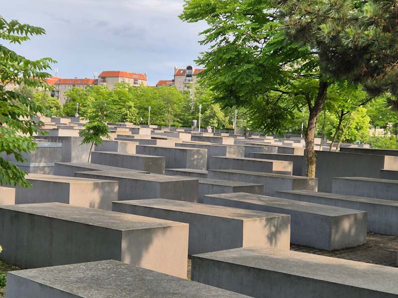 Das Denkmal für die ermordeten Juden Europas liegt in der Nähe des Brandenburger Tors. Mai 2005 wurde es eröffnet. Es ist ein besonderes Denkmal. Es besteht aus einem wellenförmigen Feld aus 2711 Betonstelen, welche von allen Seiten begehbar sind. Am Ende des Feldes geht eine Treppe hinunter zum "Ort der Information". Sie dokumentiert in einer Ausstellung die Verfolgung und Vernichtung der europäischen Juden. in vier Themenräume wird die Vergangenheit aufgearbeitet.