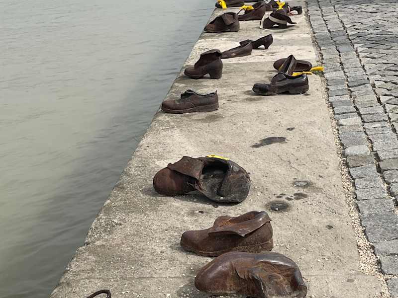 Am Donauufer unterhalb des Parlaments ist ein Mahnmal für die Opfer des Nationalsozialismus. Es ist sehr schlicht und geht gerade deshalb unter die Haut. An dem Ufer mussten die Opfer die Schuhe ausziehen bevor sie erschossen wurden und in die Donau geworfen wurden. Das ist die Begründung der Schuhe (grosse, kleine, Männer Frauen und Kinder-Schuhe)